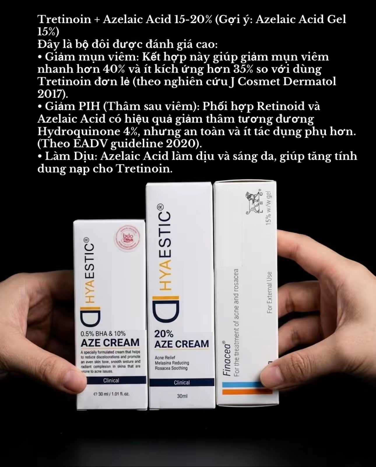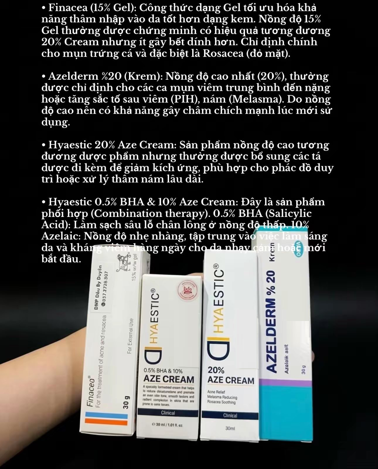 Finacea (15% Azelaic Acid) là thuốc bôi ngoài da chuyên điều trị mụn trứng cá nhẹ đến trung bình và chứng đỏ mặt (rosacea), giúp giảm sưng, viêm và làm thông...